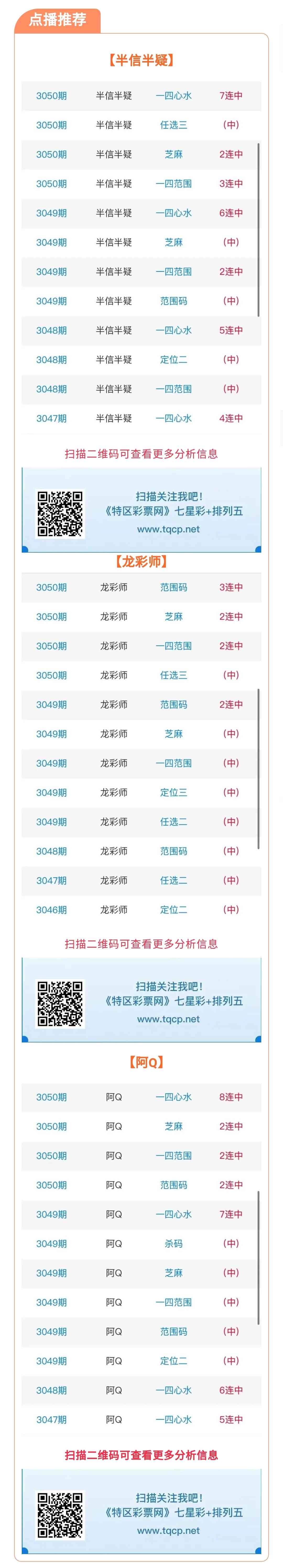 七星彩3051期点播推荐半信半疑、龙彩师和阿Q 3位分析师