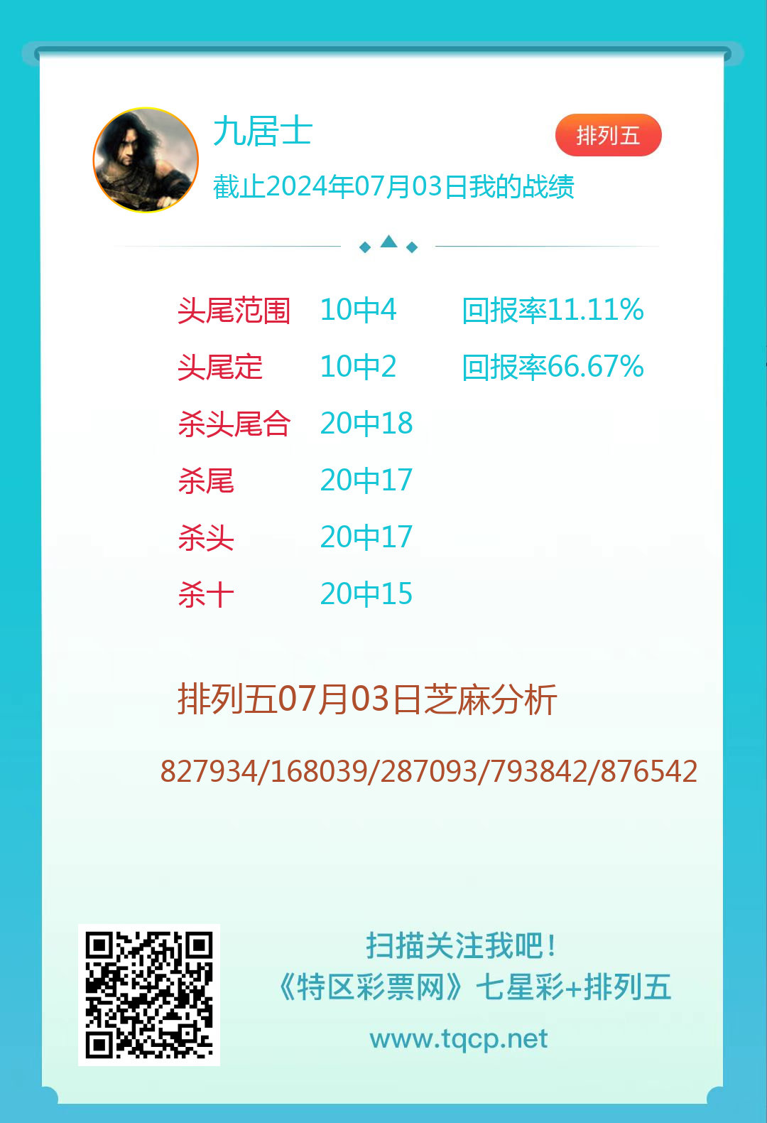 排列五24175期点播推荐路路通、九居士和特区向爷 3位分析师