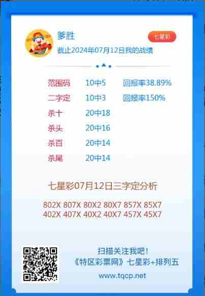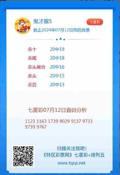 七星彩3061期点播推荐鬼才龍5、闻一知十和爹胜 3位分析师