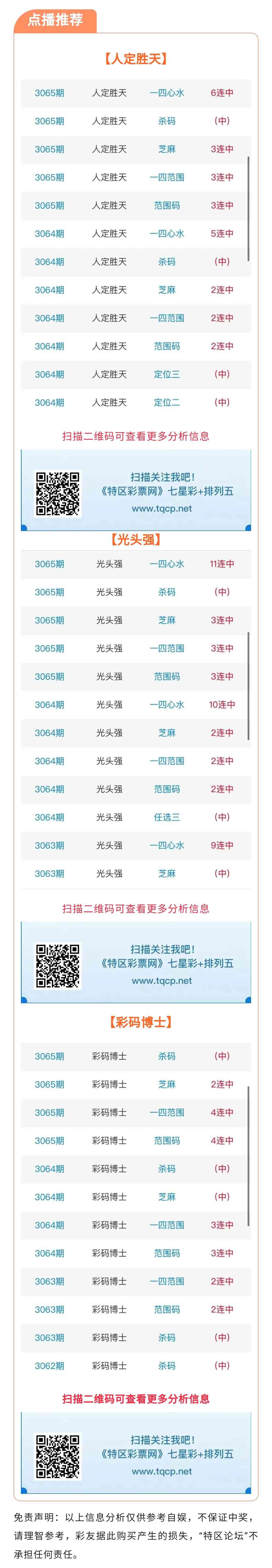 七星彩3066期点播推荐人定胜天、光头强和彩码博士 3位分析师