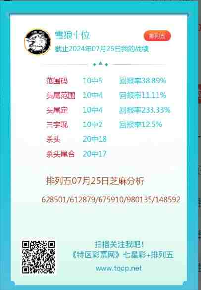 排列五24198期点播推荐步步为赢、亿 通 和雪狼十位 3位分析师