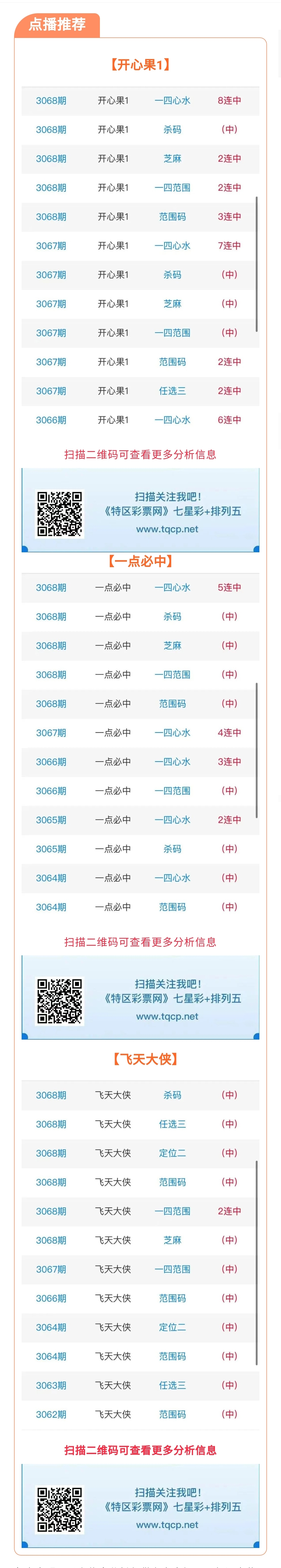 七星彩3069期点播推荐开心果1、一点必中和飞天大侠 3位分析师