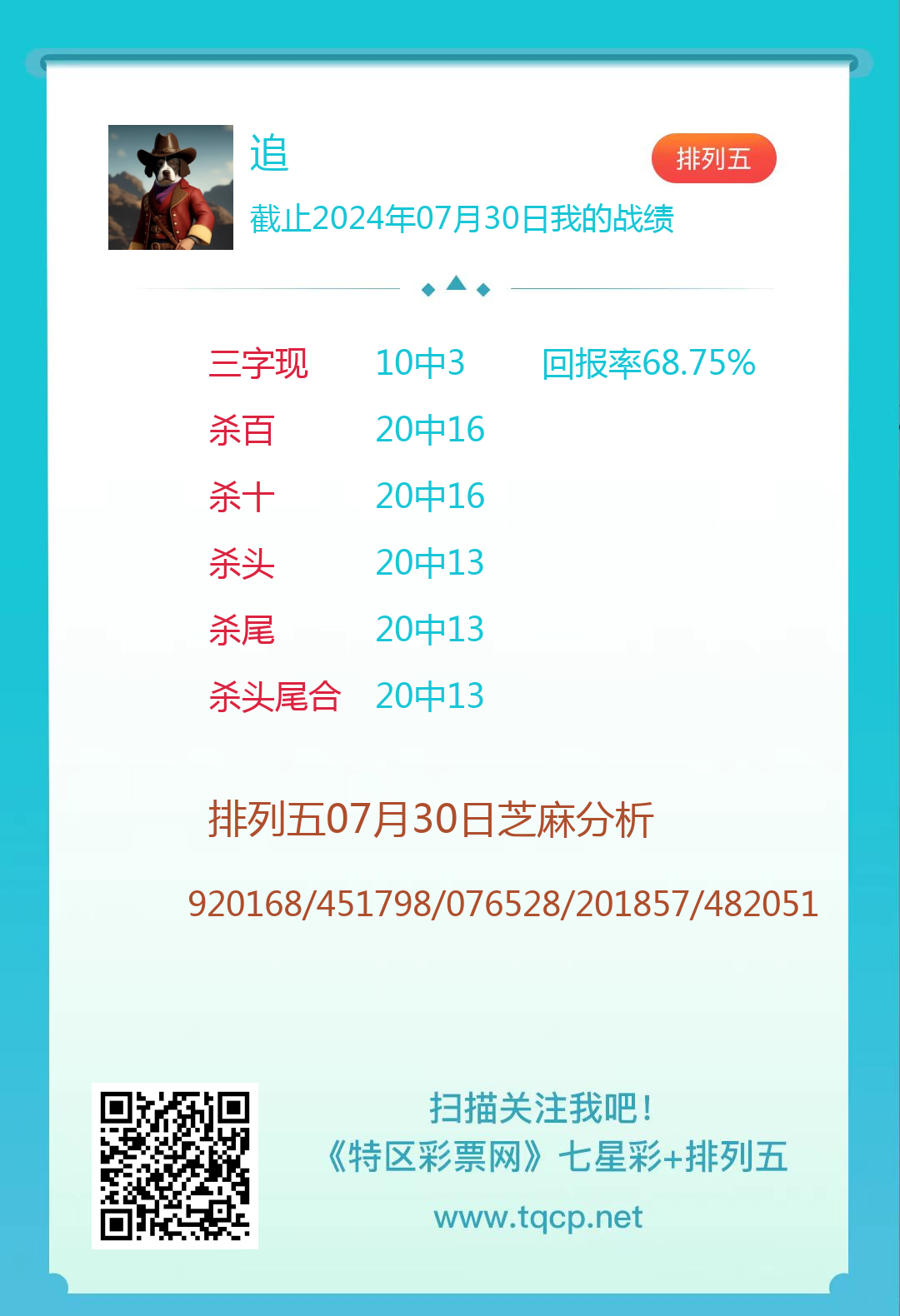 排列五24202期点播推荐追、光头强和阿昌哥 3位分析师