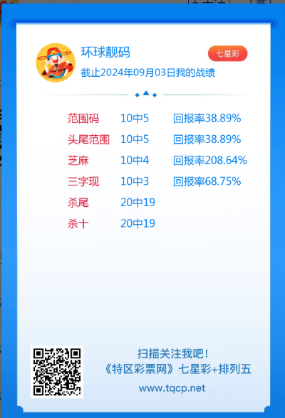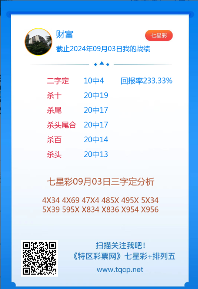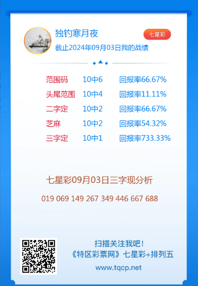 七星彩3084期点播推荐独钓寒月夜、财富和环球靓码3位分析师