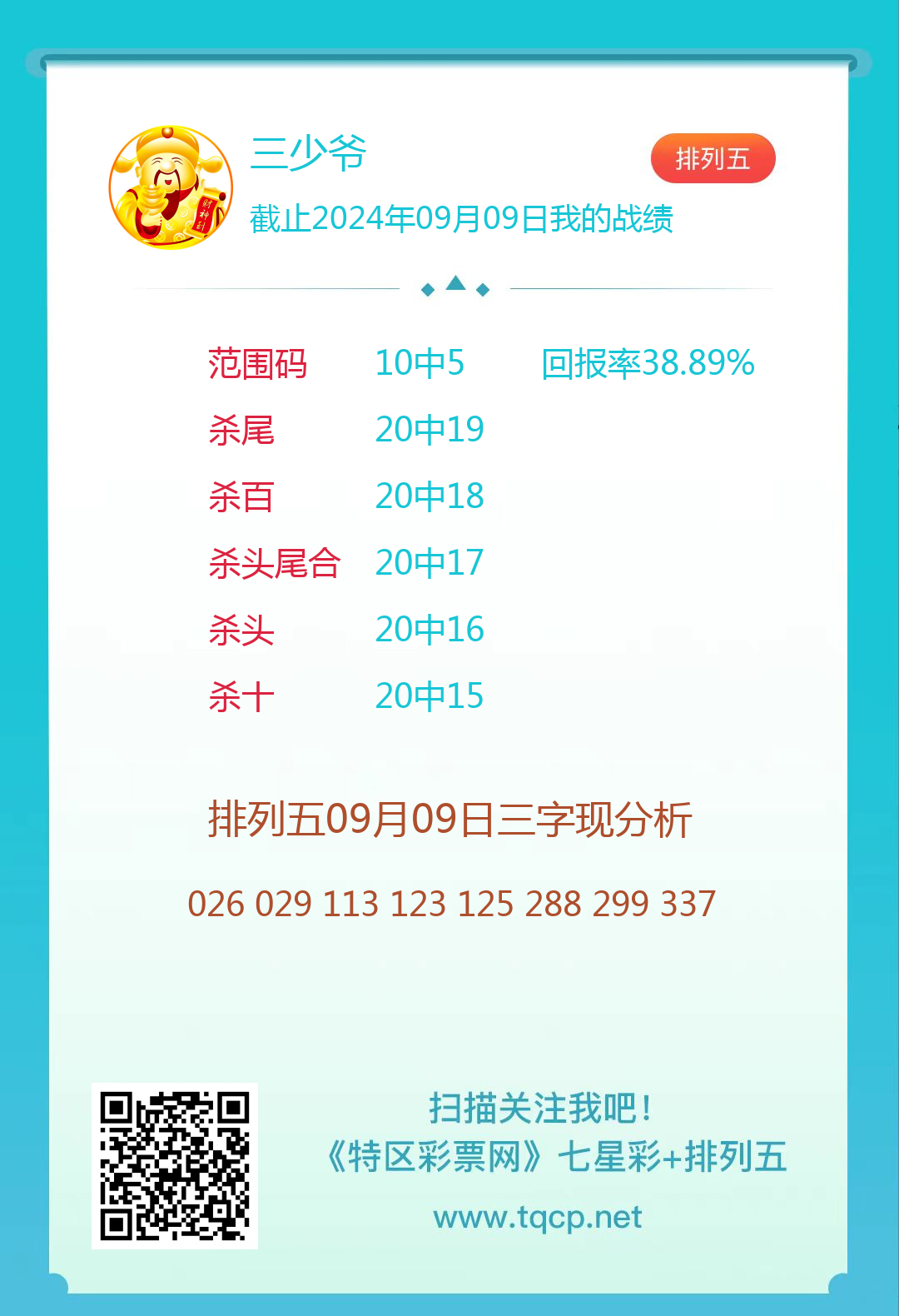 排列五24243期点播推荐硬尾、脚踏实地和三少爷 3位分析师