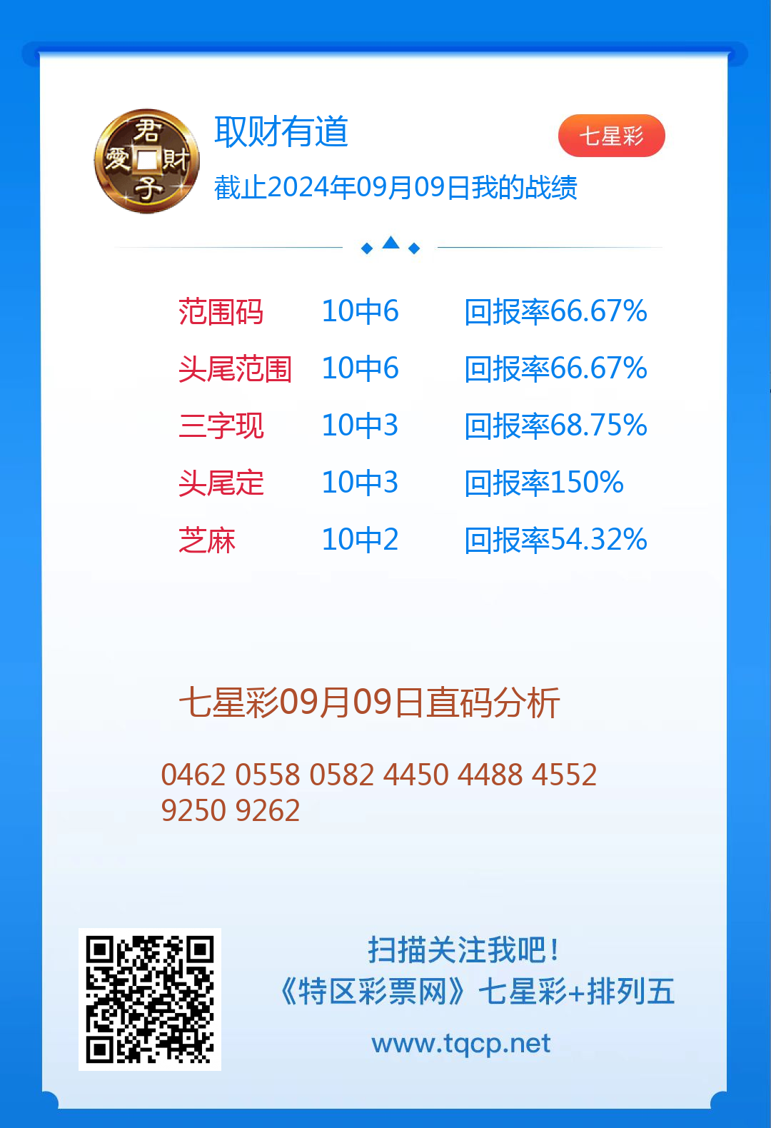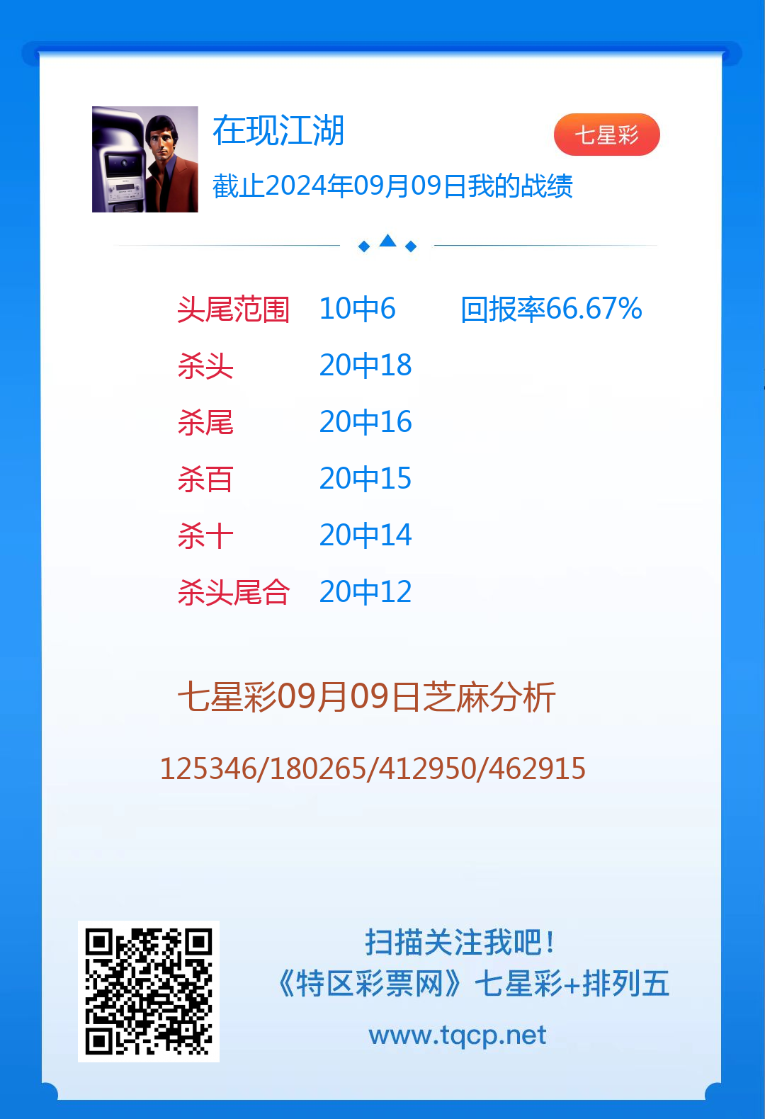 七星彩3087期点播推荐取财有道、在现江湖和码上收米3位分析师