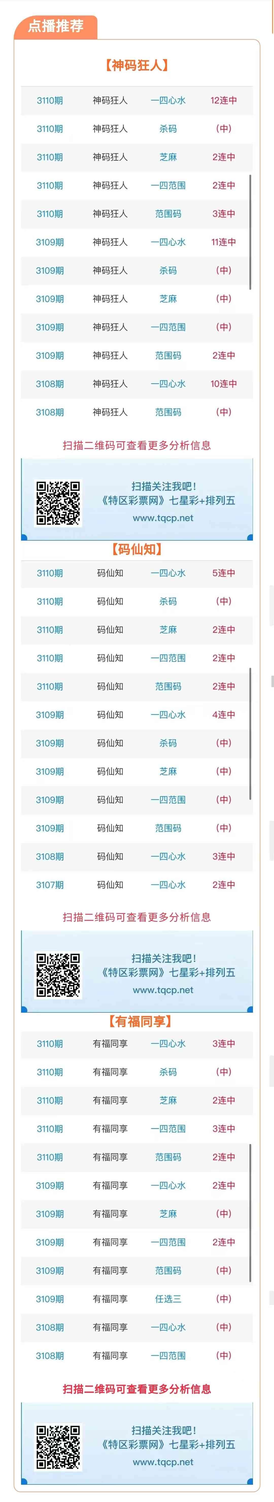 七星彩3111期点播推荐神码狂人、码仙知和福有福同享 3位分析师
