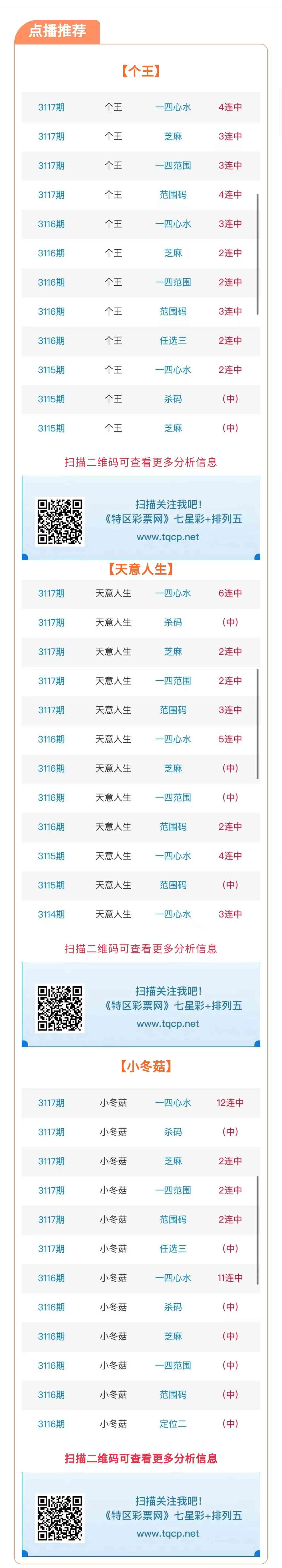 七星彩3118期点播推荐尾王、天意人生和小冬菇 3位分析师