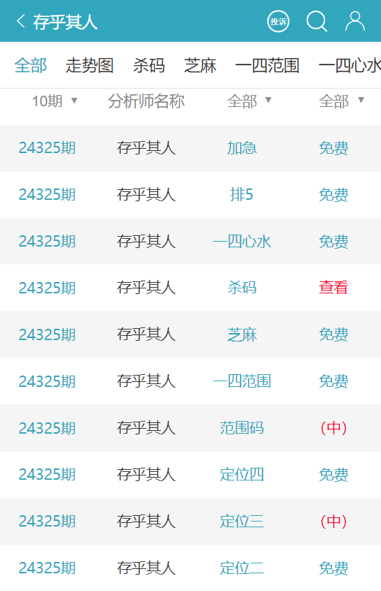 排列五24326期点播推荐存乎其人、一夜海彩和杨大师3位分析师