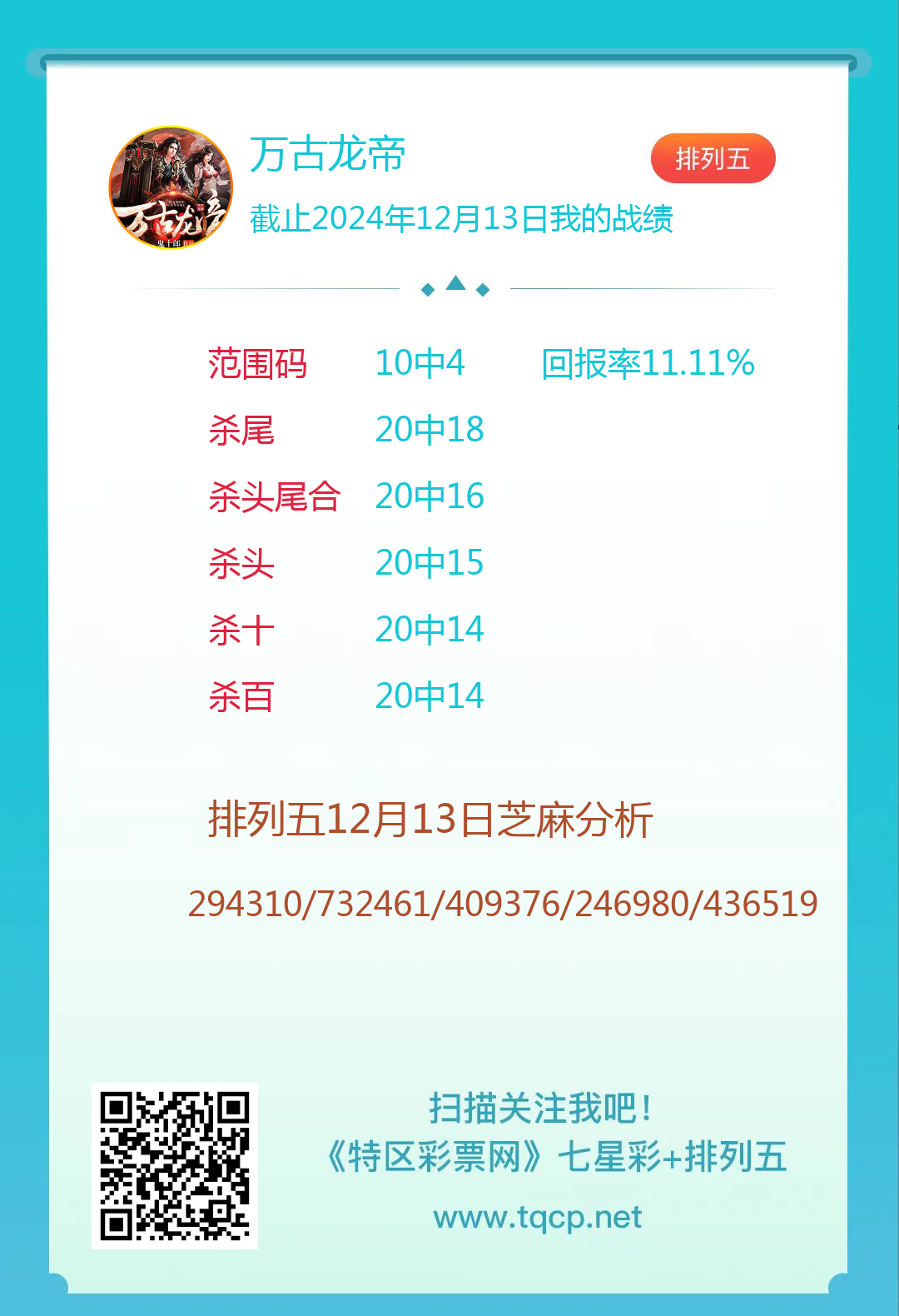 排列五24334期点播推荐万古龙帝、灵魂和东哥 3位分析