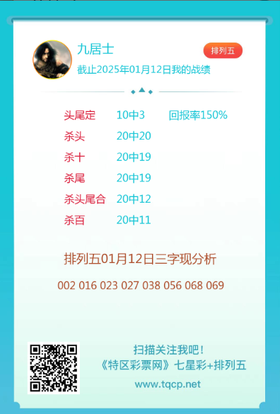 排列五25012期点播推荐九居士,爹胜和点石成金 3位分析师
