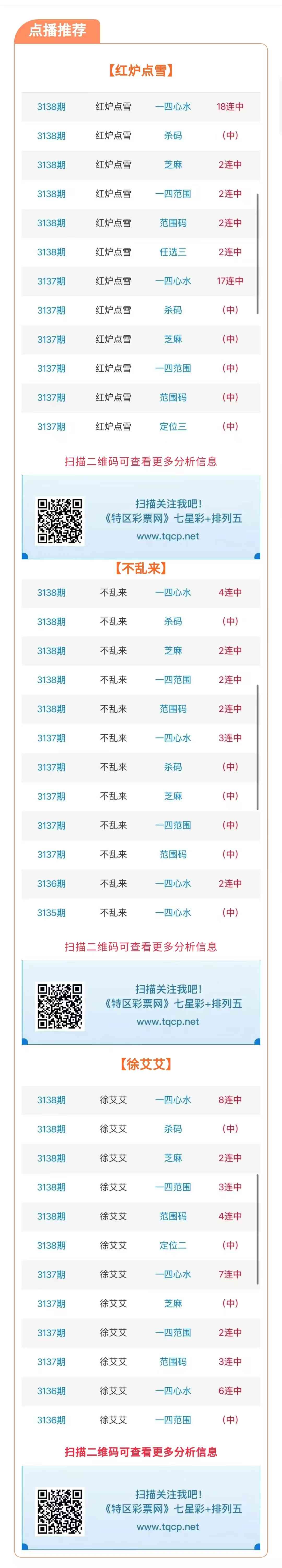 七星彩3139期点播推荐红炉点雪、不乱来和徐艾艾 3位分析师