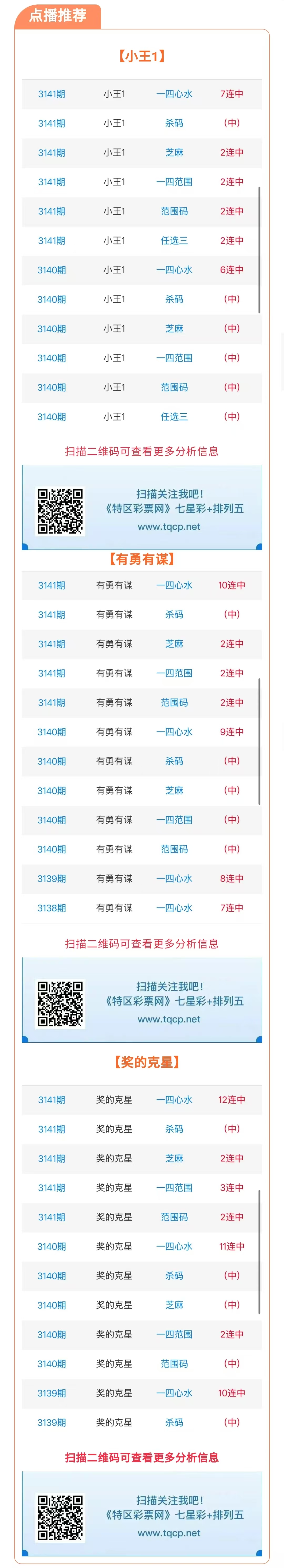 七星彩3142期点播推荐小王1、有勇有谋和奖的克星 3位分析师