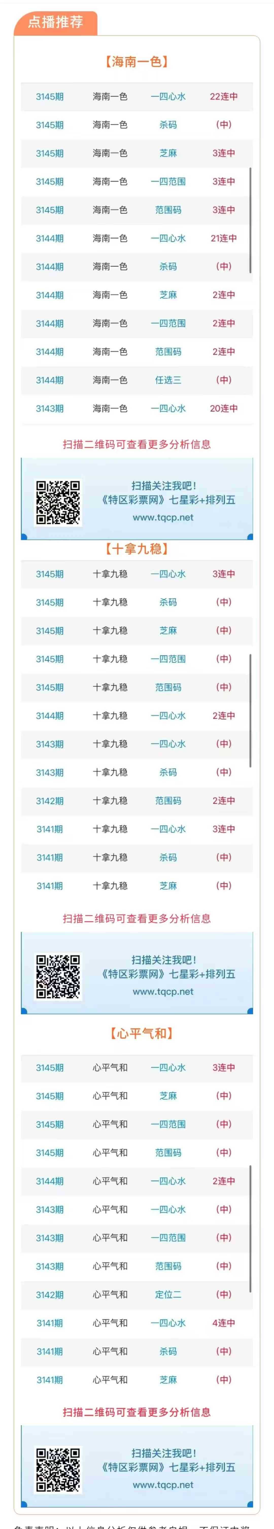 七星彩3146期点播推荐海南一色、十拿九稳和心平气和 3位分析师