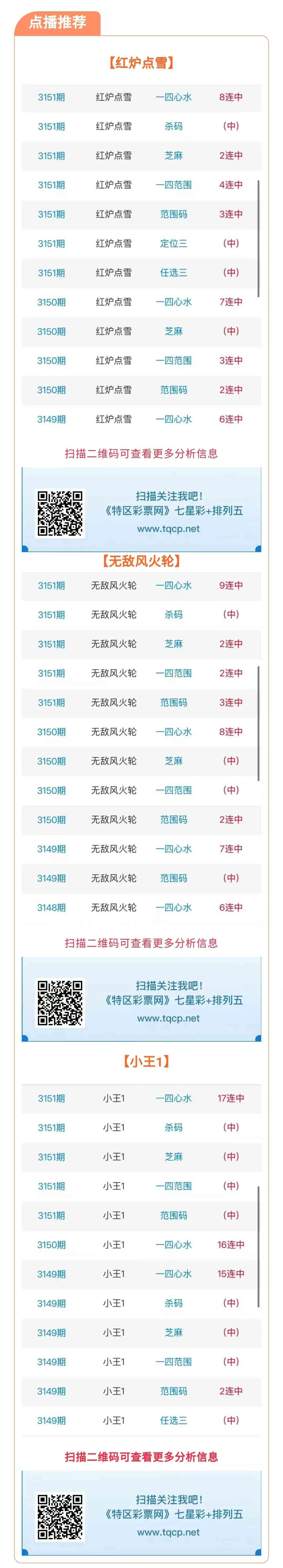 七星彩3152期点播推荐红炉点雪、无敌风火轮和小王1 3位分析师