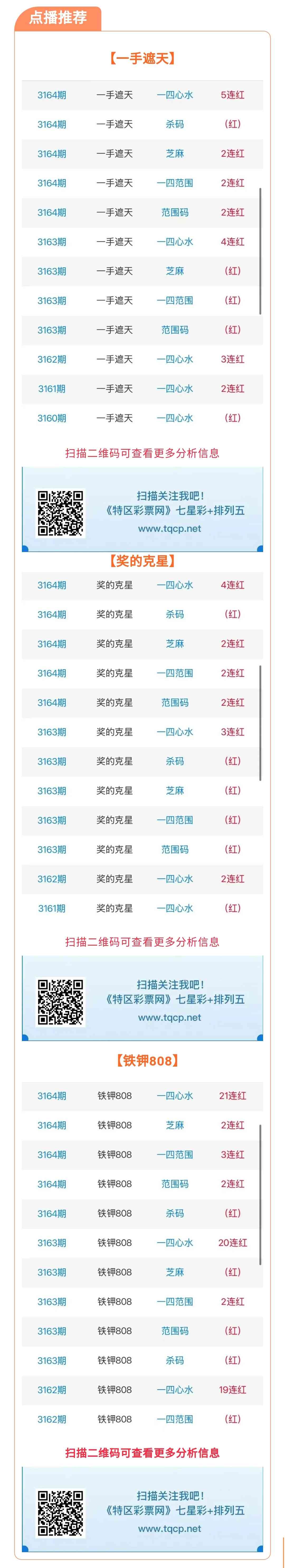 七星彩3165期点播推荐一手遮天、奖的克星和铁钾808 3位分析师5