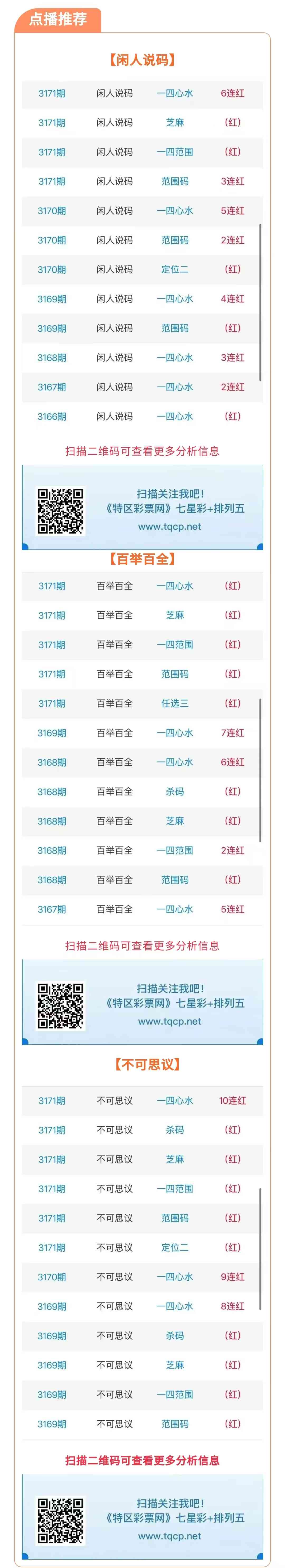 七星彩3172期点播推荐闲人说码、百举百全和不可思议 3位分析师