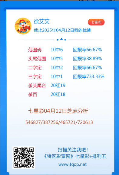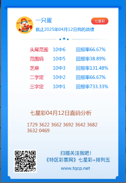 七星彩3173期点播推荐徐艾艾、期期上奖和一只蛋 3位分析师