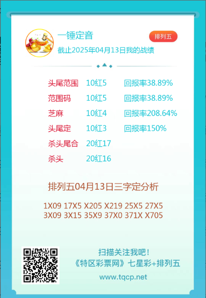 排列五25093期点播推荐奇规特码,一锤定音和硬尾 3位分析师