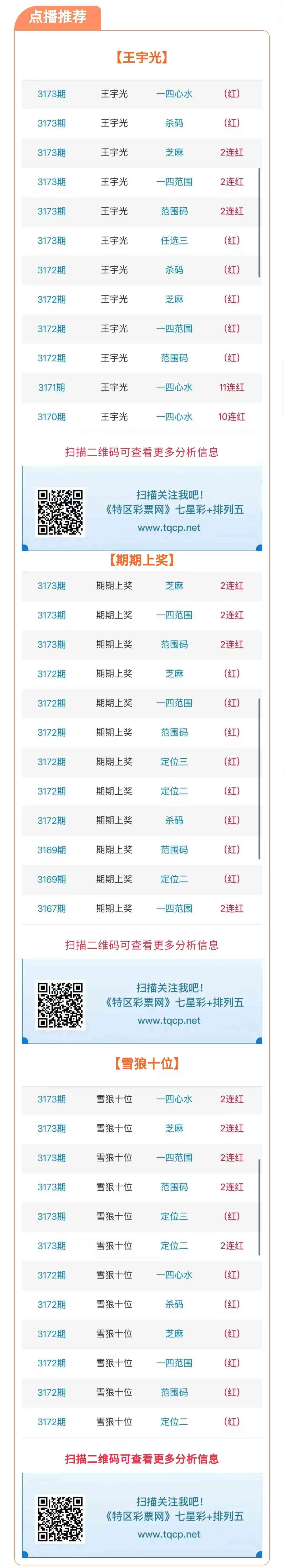 七星彩3174期点播推荐王宇光、期期上奖和雪狼十位 3位分析师