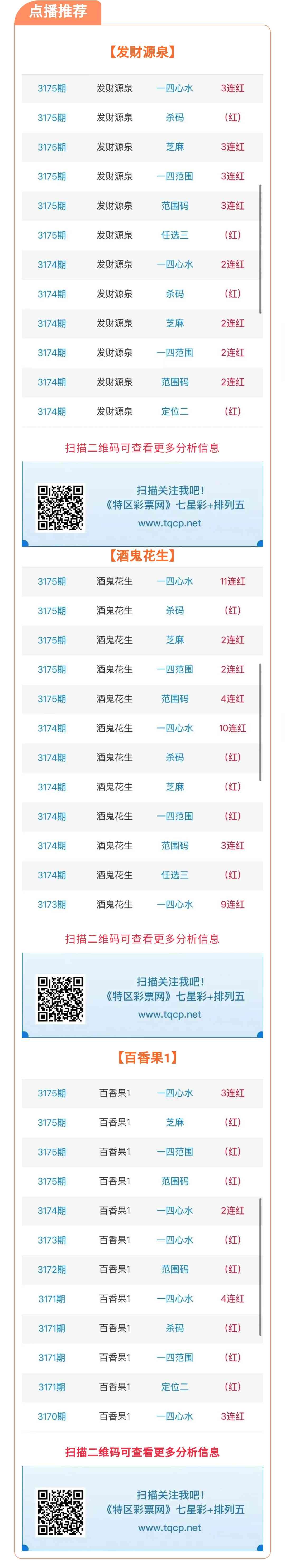 七星彩3176期点播推荐发财源泉、酒鬼花生和百香果1 3位分析师