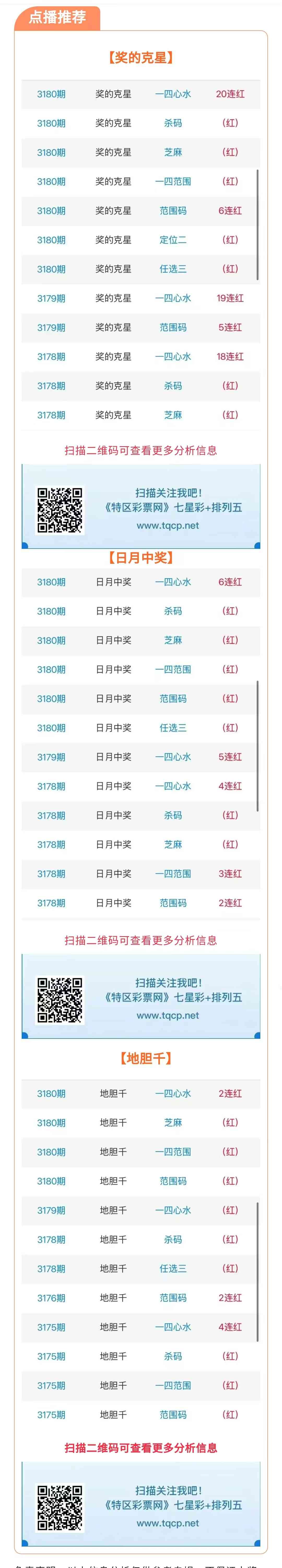 七星彩3181期点播推荐奖的克星、日月中奖和地胆头 3位分析师