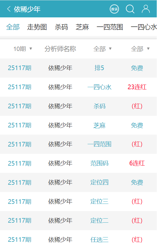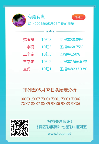 排列五25118期点播推荐有勇有谋,闻一知十和依稀少年 3位分析师