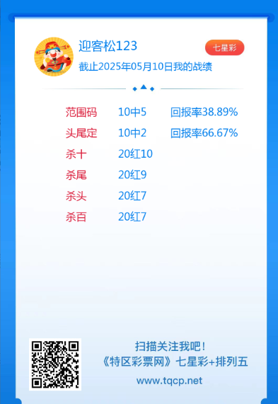 七星彩3185期点播推荐老鼠精、迎客松123和财源风口 3位分析师
