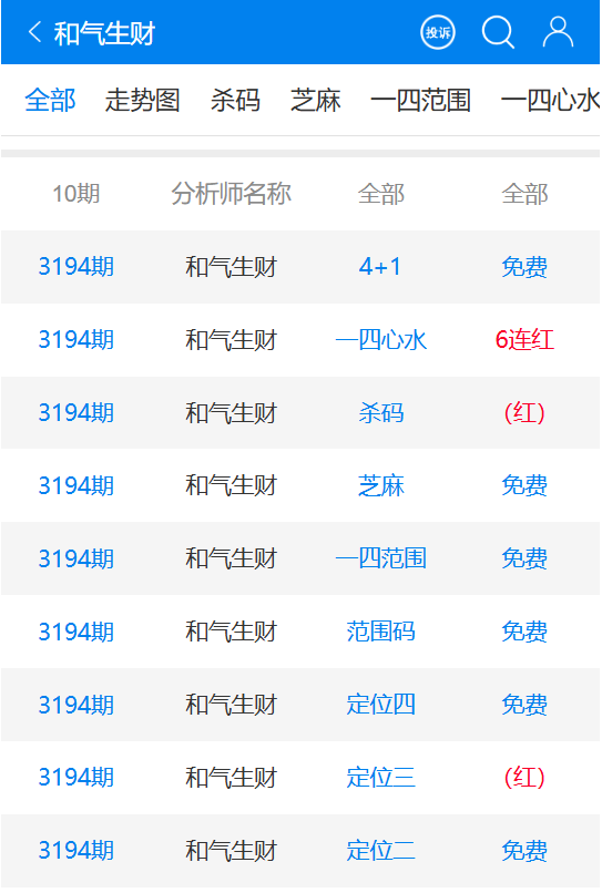七星彩3195期点播推荐摆渡知道、和气生财和农大博五 3位分析师