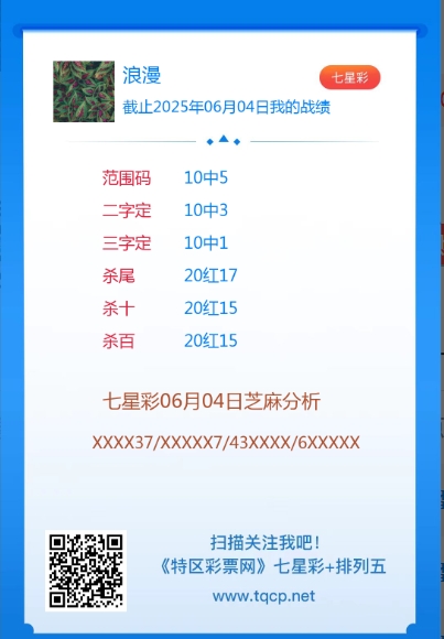 七星彩3196期点播推荐哥炸中、浪漫和独钓寒月夜 3位分析师