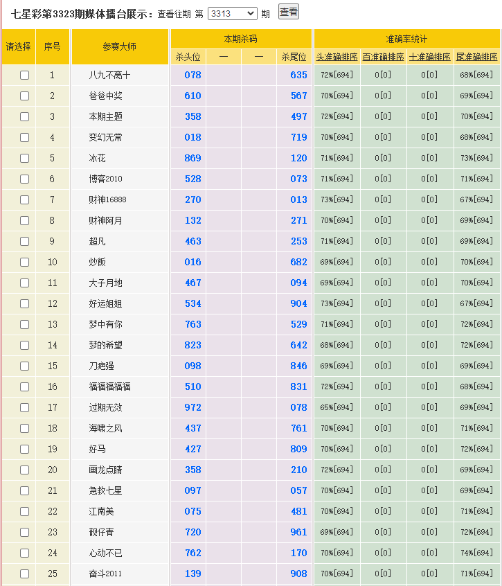 七星彩杀码荣誉榜