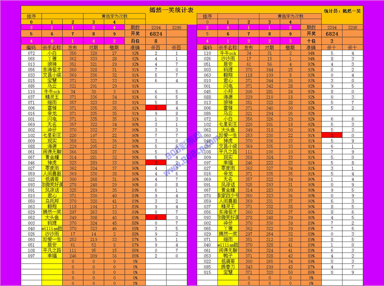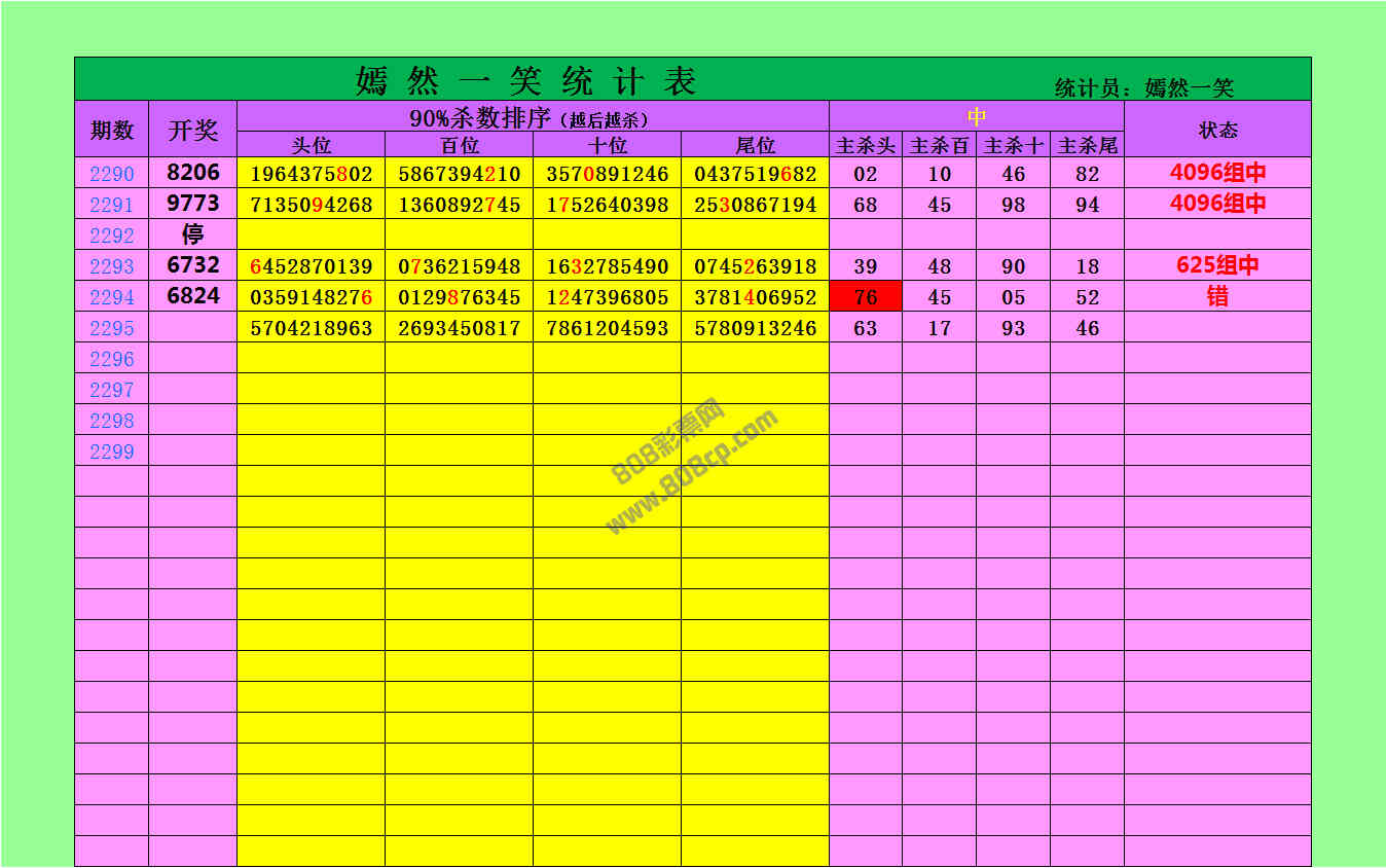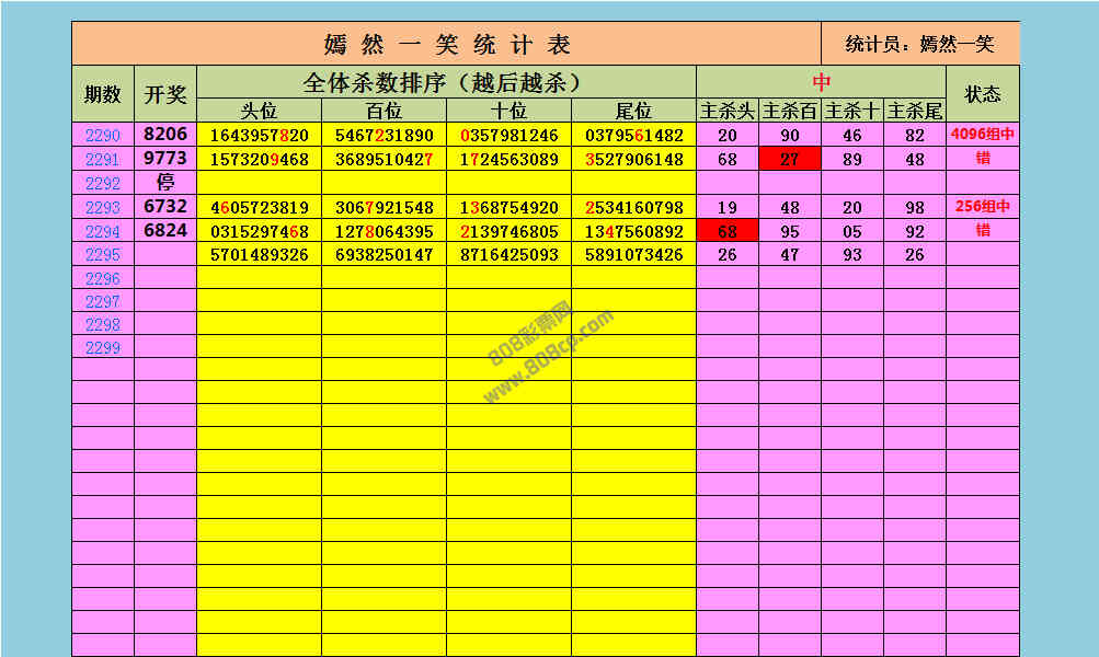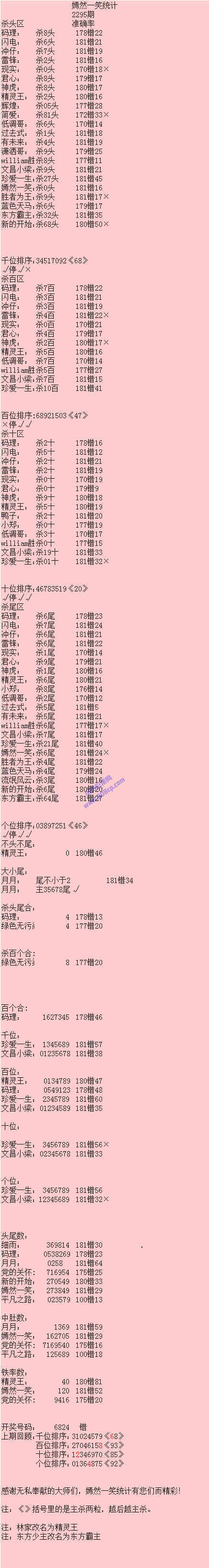 2295期数据:嫣然一笑统计