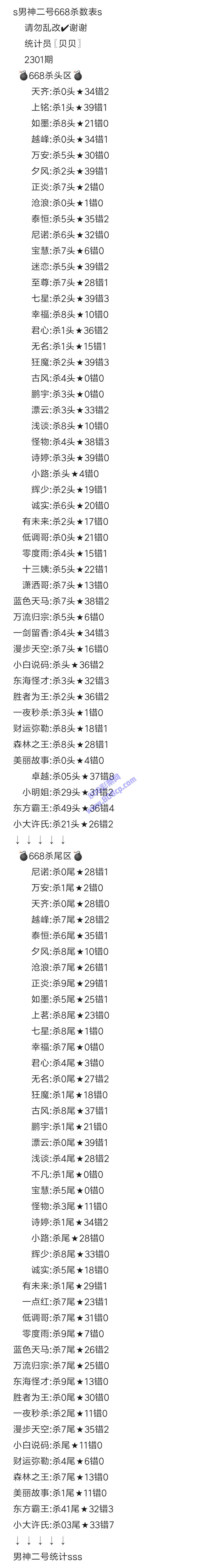 2301期数据:男神二号统计