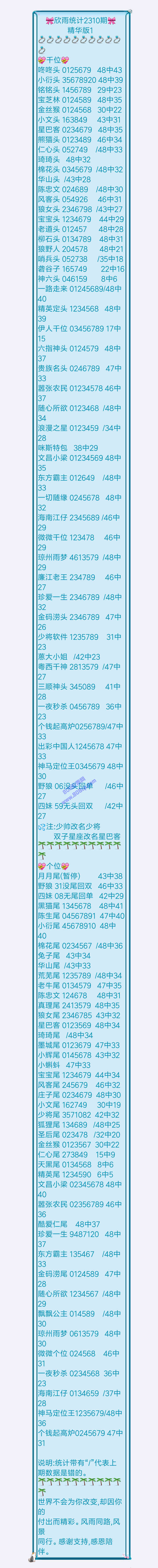 2310期数据:欣雨统计