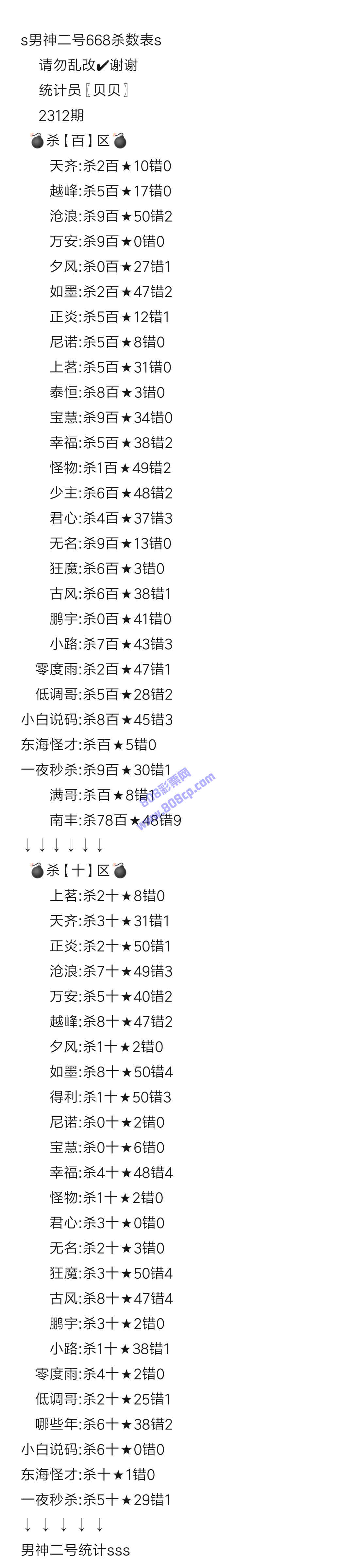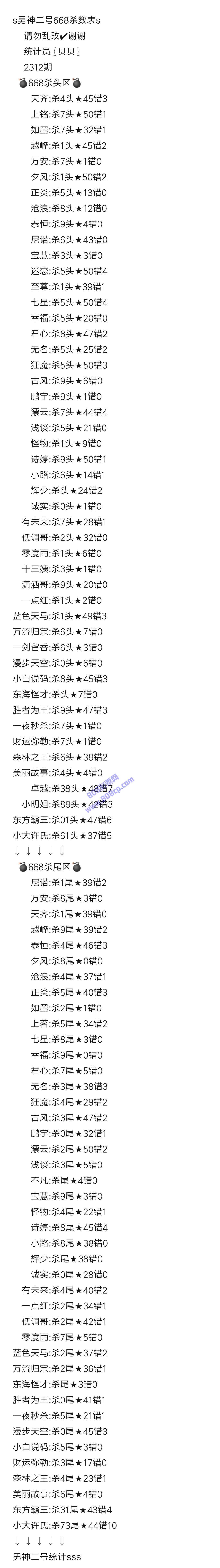 2312期数据:男神二号统计