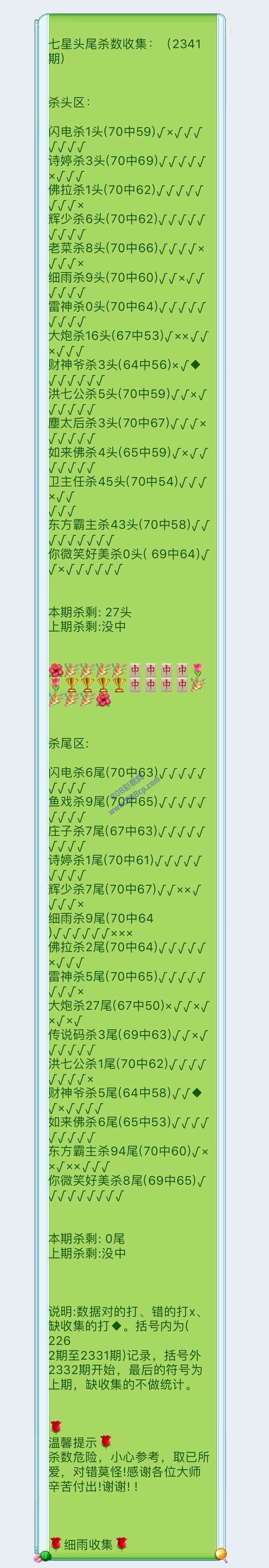 2341期数据:细雨统计
