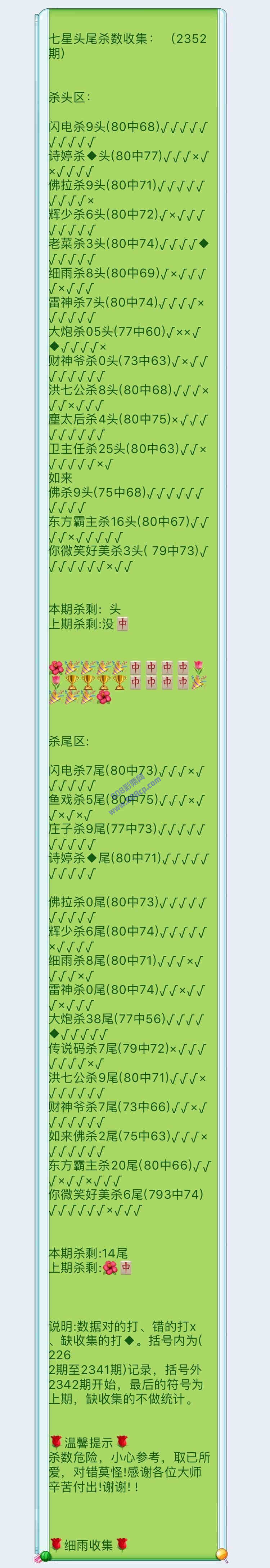 2352期数据:细雨统计