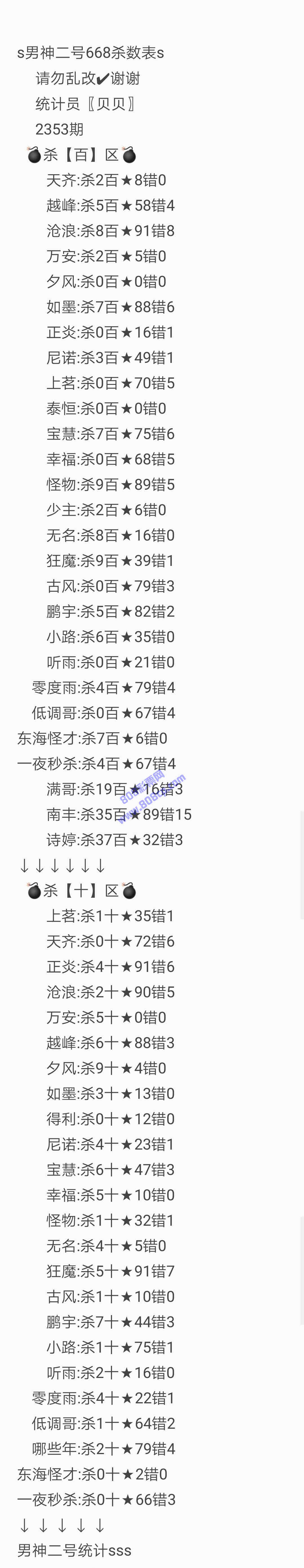 2353期数据:男神二号统计