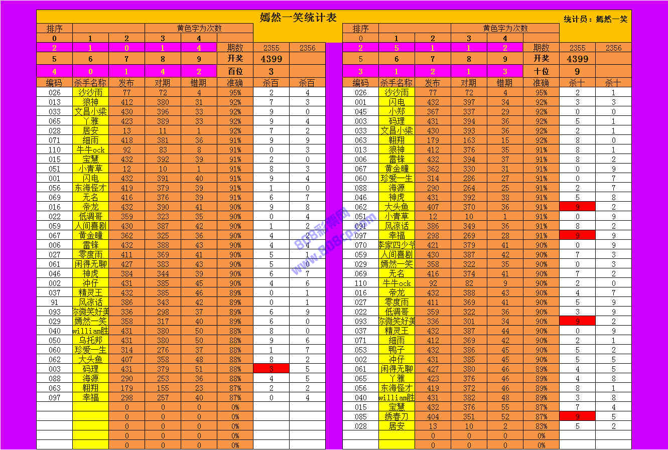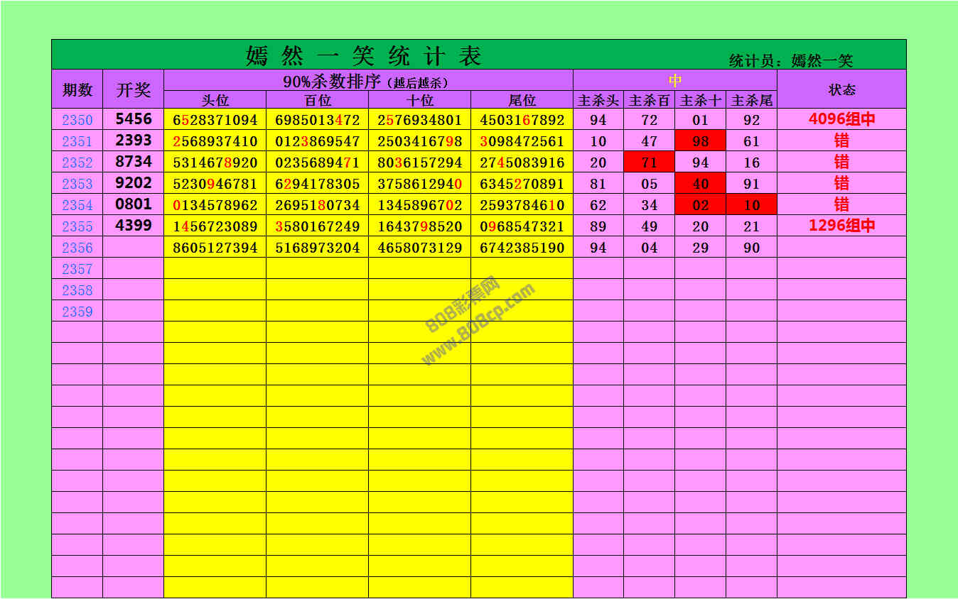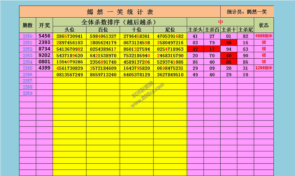 2356期数据:嫣然一笑统计