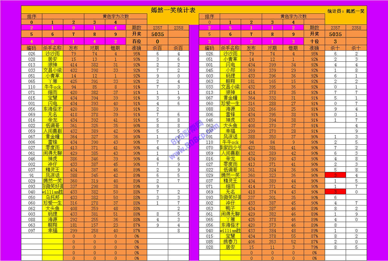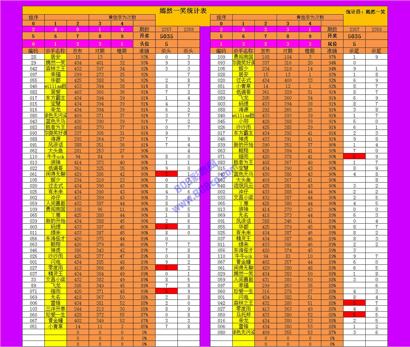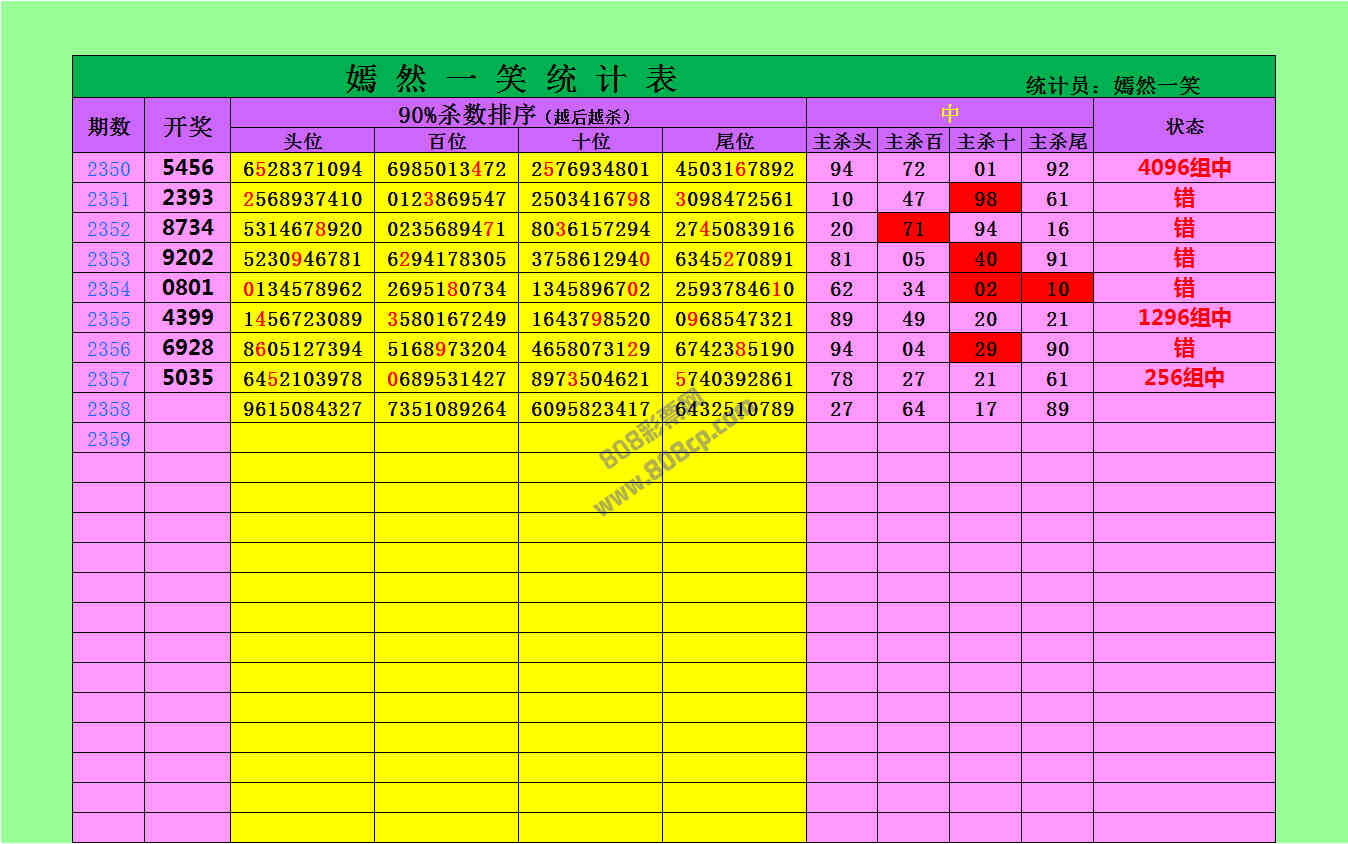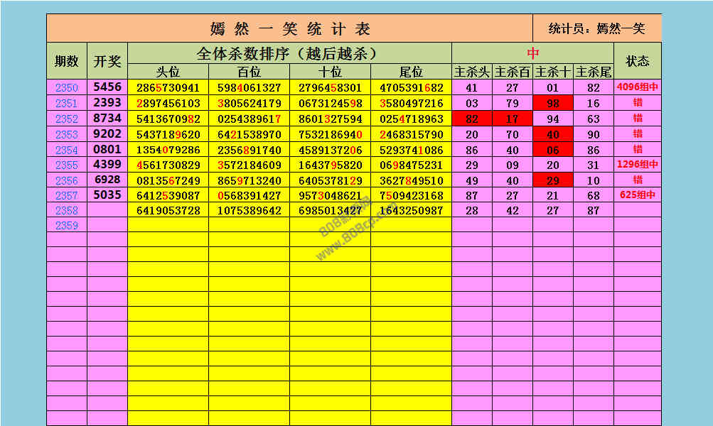 2358期数据:嫣然一笑统计