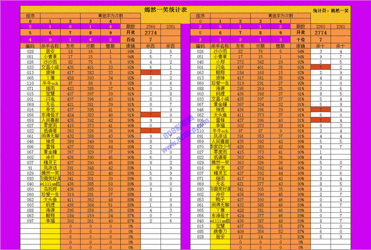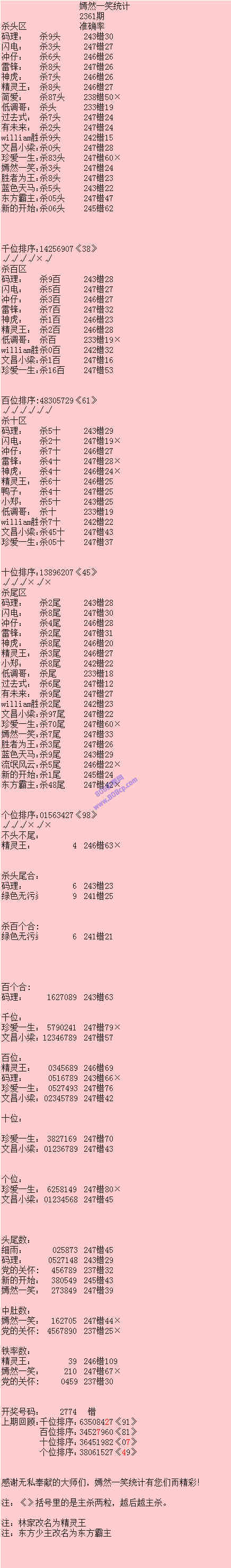 2361期数据:嫣然一笑统计
