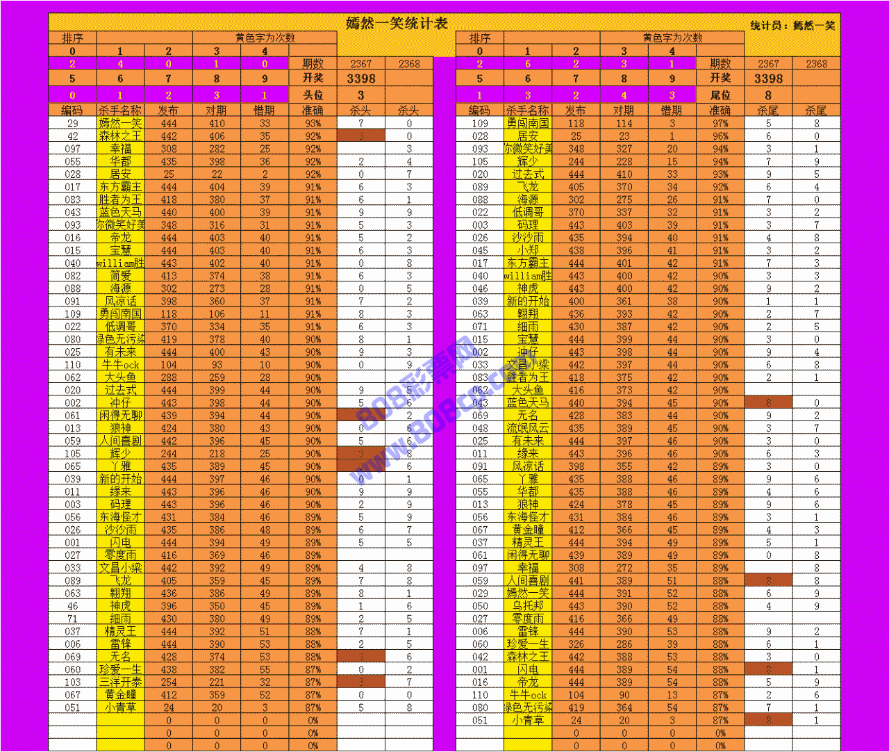 2368期数据:嫣然一笑统计