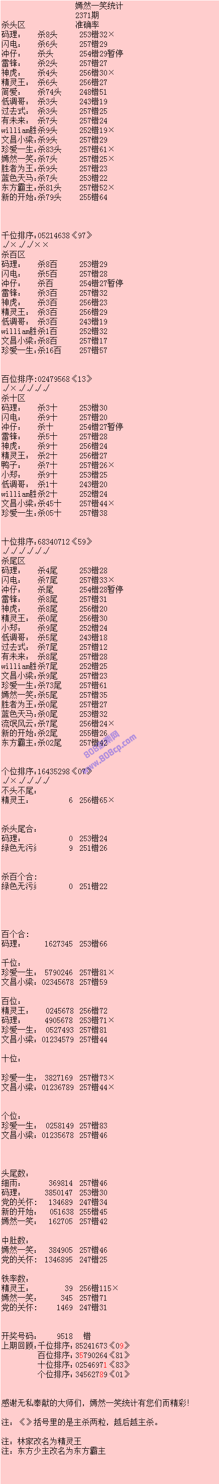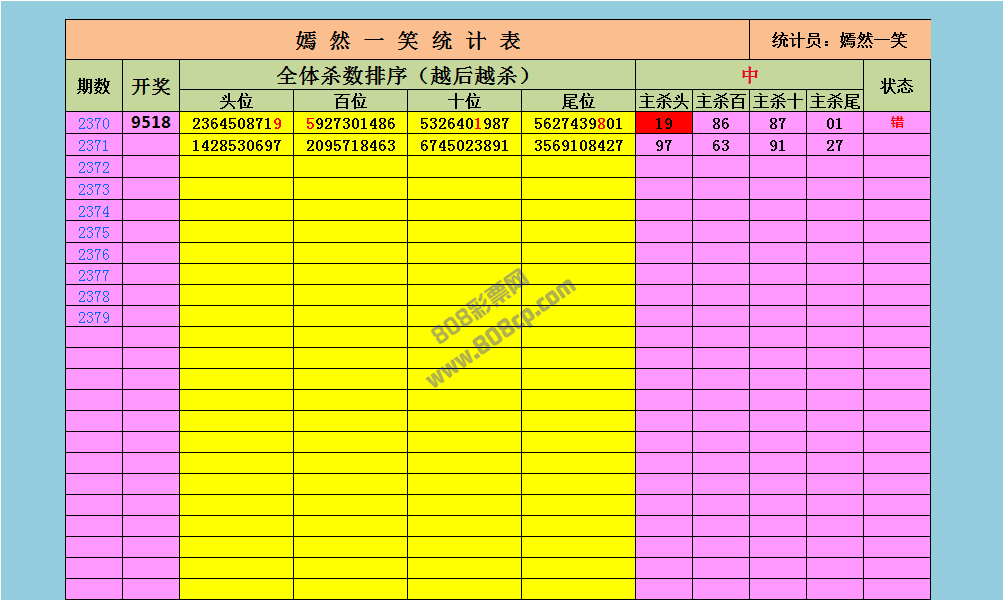 2371期数据:嫣然一笑统计