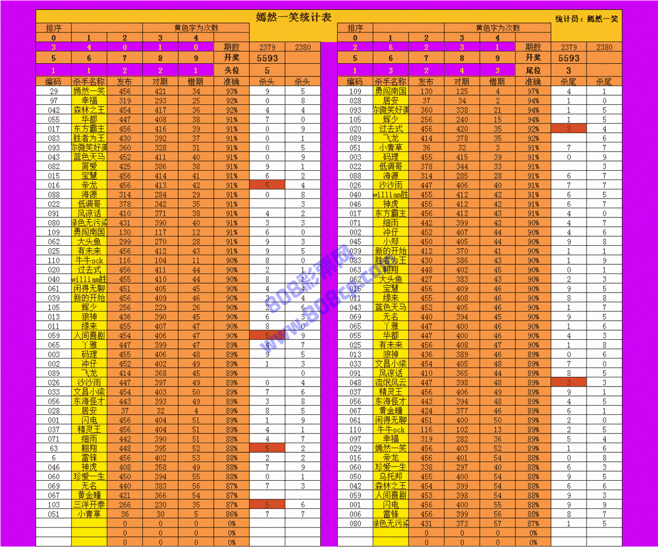 2380期数据:嫣然一笑统计