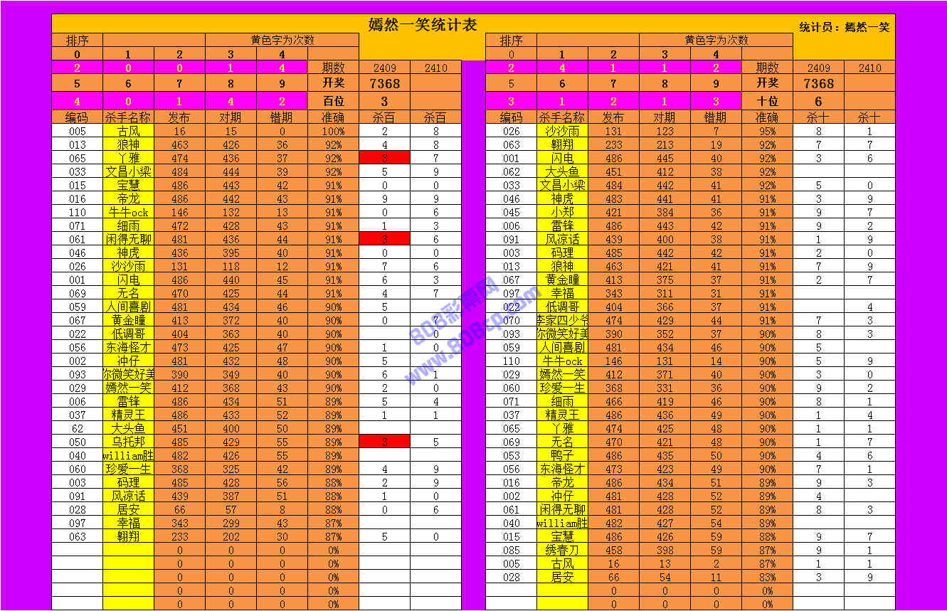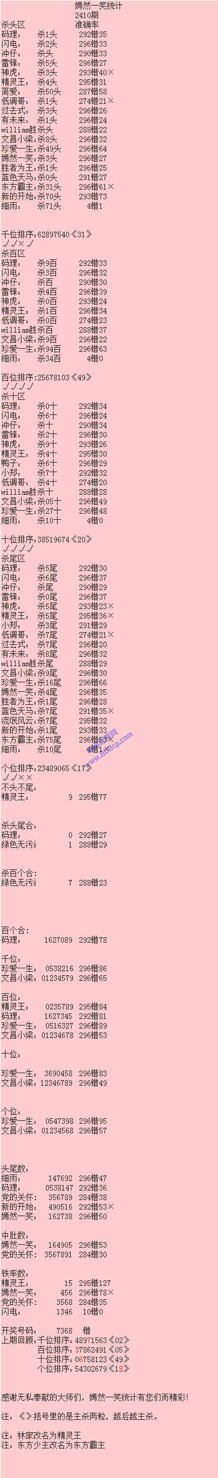 2410期数据:嫣然一笑统计