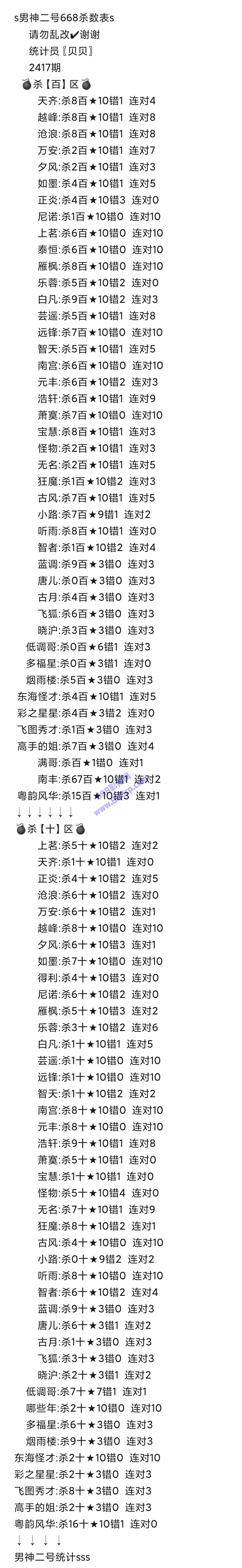 2417期数据:男神二号统计