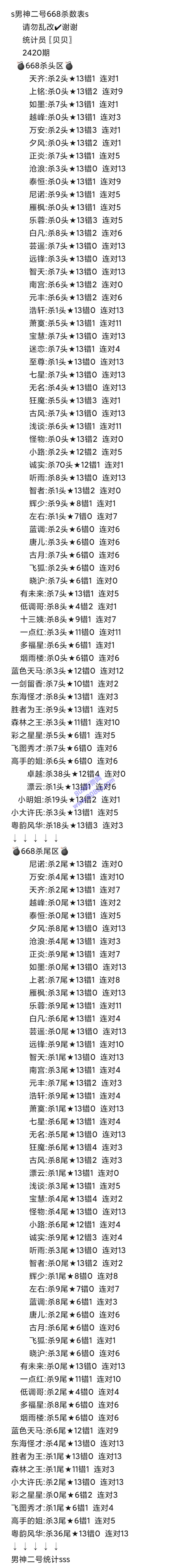 2420期数据:男神二号统计