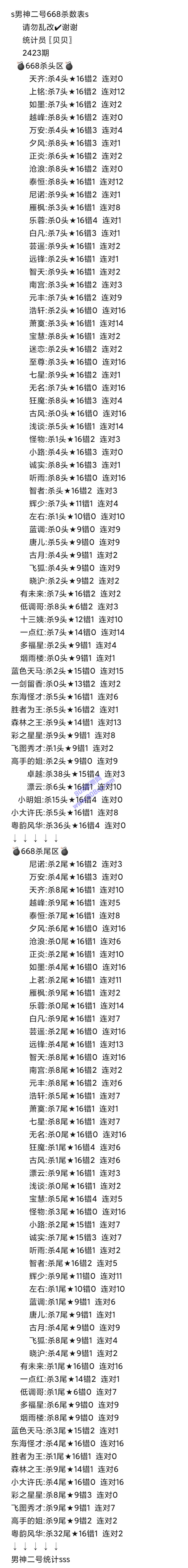 2423期数据:男神二号统计