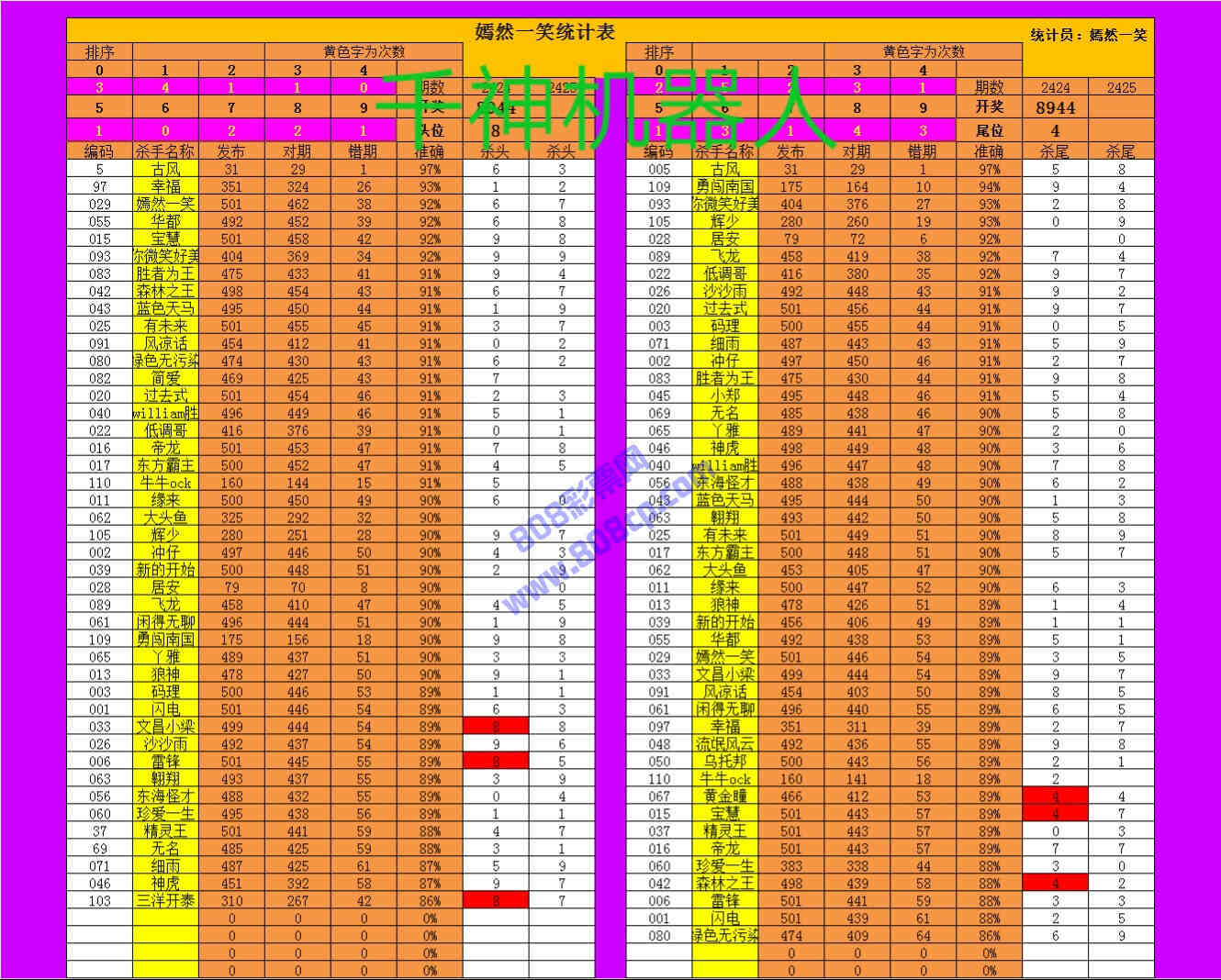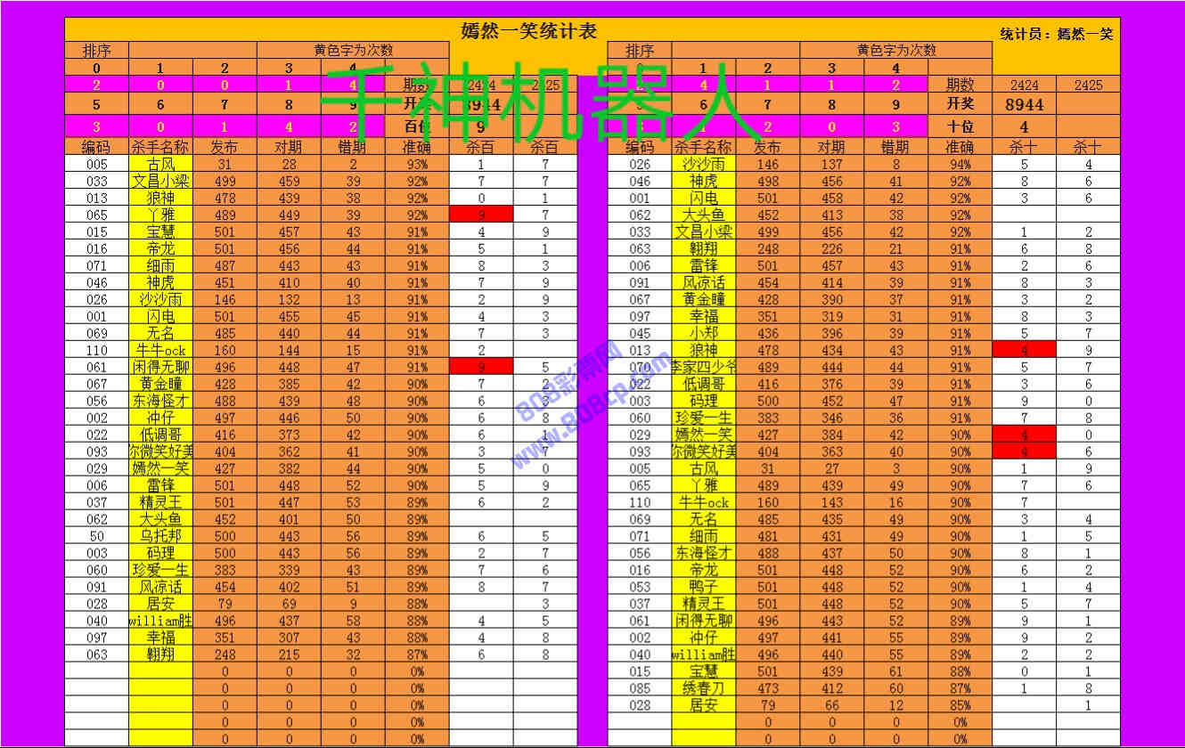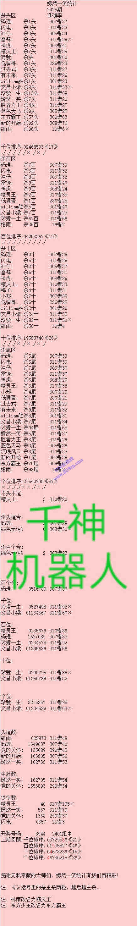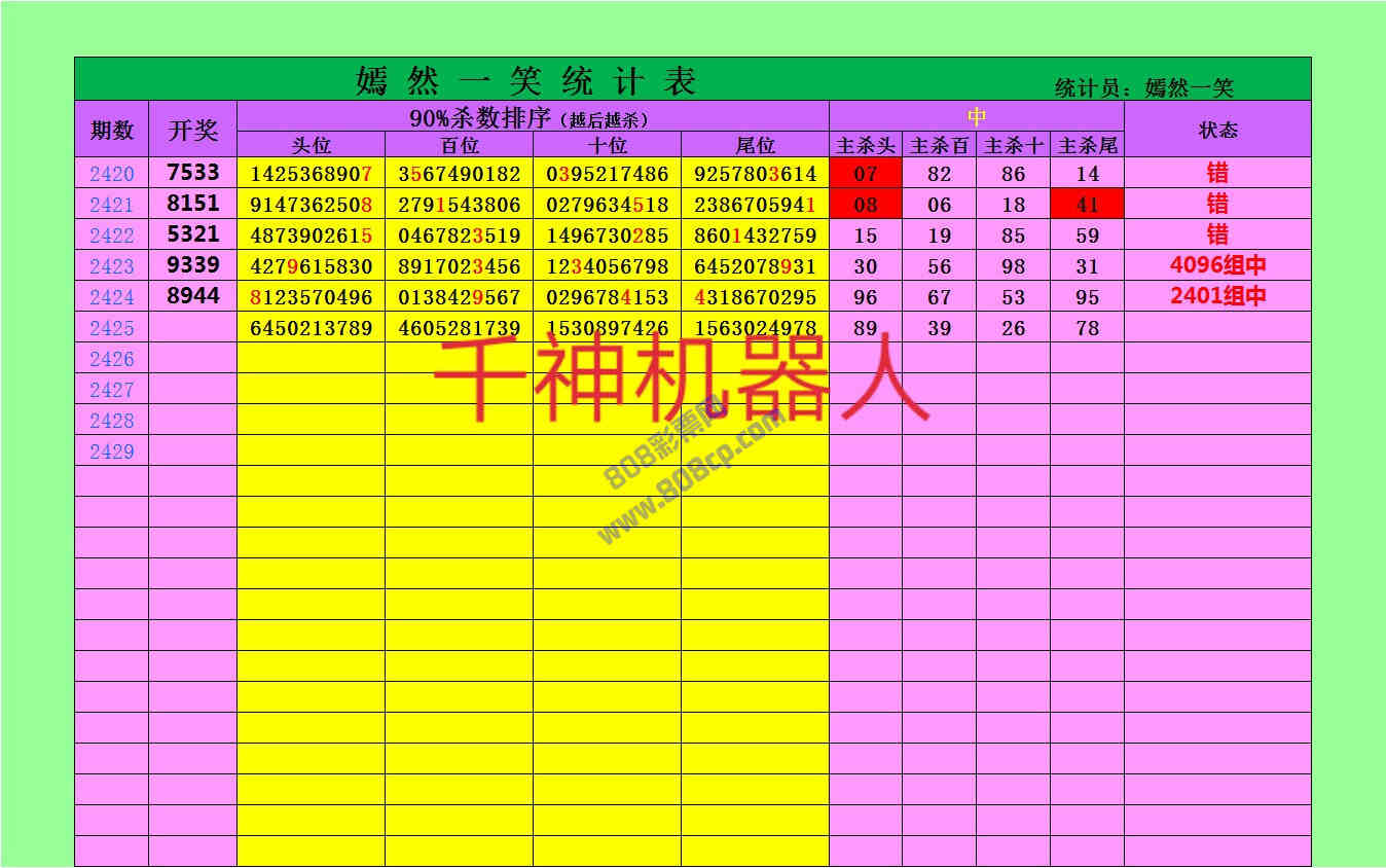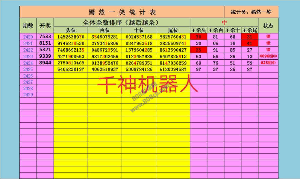 2425期数据:嫣然一笑统计