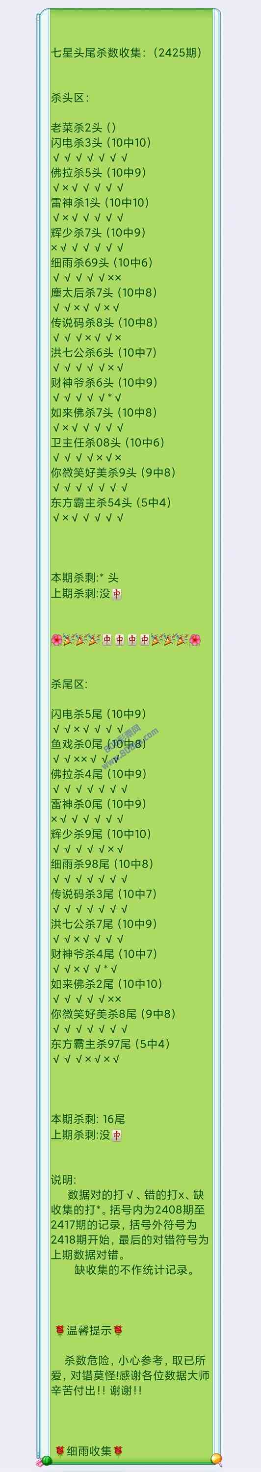2425期数据:细雨统计